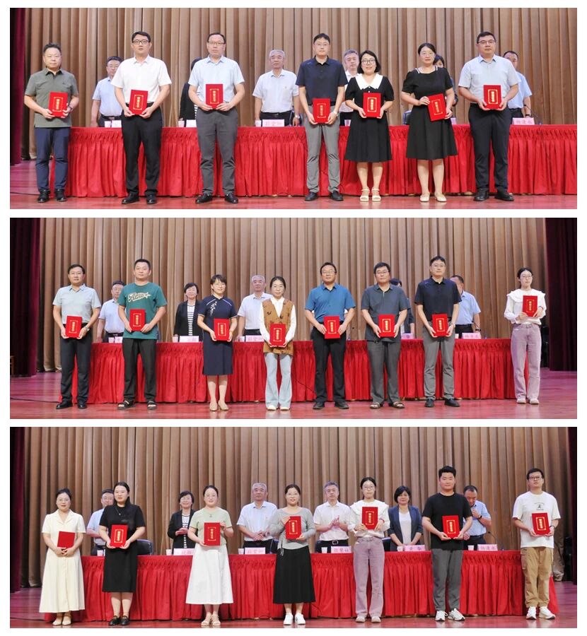 院领导为获奖教师代表颁发荣誉证书。四位获奖教师代表上台发言,分享了教学心得与体会,强调了“医者仁心,师者匠心”的育人理念。