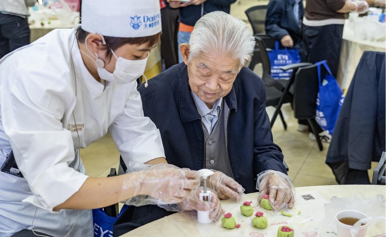 中秋文化体验环节让现场充满团圆气息,老干部们共同观看中秋传统节日短片,在光影流转中重温民俗渊源,感受 “家国同庆” 的文化内涵。最令人期待的手工月饼制作环节,山东大峰食品的专业老师现场示范揉面、包馅、压模等技巧,老干部们挽起袖子动手实践,面团在掌心揉搓成型,月饼模扣出精美花纹,谈笑间,一个个饱含心意的月饼逐渐成型,香甜气息弥漫全场。