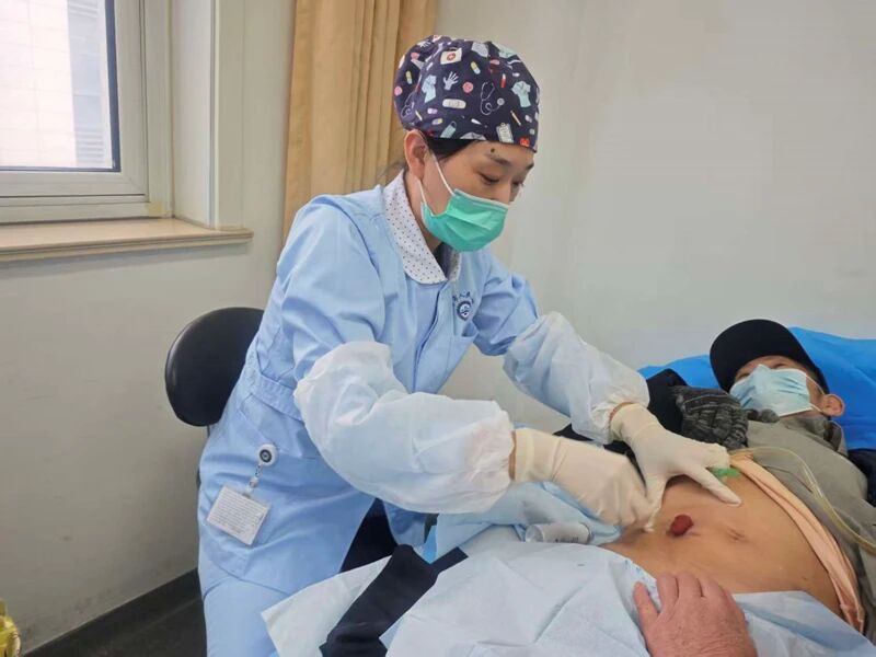 济南市人民医院造口关爱志愿者还利用休息时间,为经济困难的造口患者家庭提供了无偿专业护理服务。他们细致地为患者进行造口评估与护理,耐心指导家属操作技巧,并留下长期咨询联系方式,让患者家庭深切感受到医院的温暖与关怀。