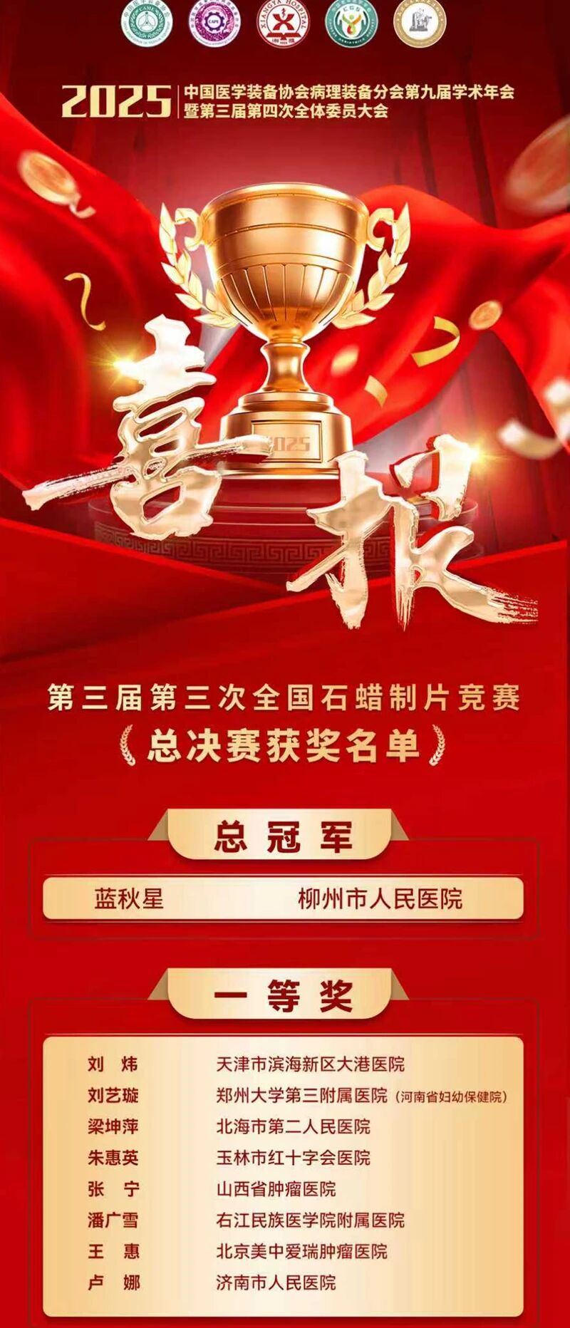 喜报!济南市人民医院病理科卢娜荣获全国石蜡制片竞赛一等奖