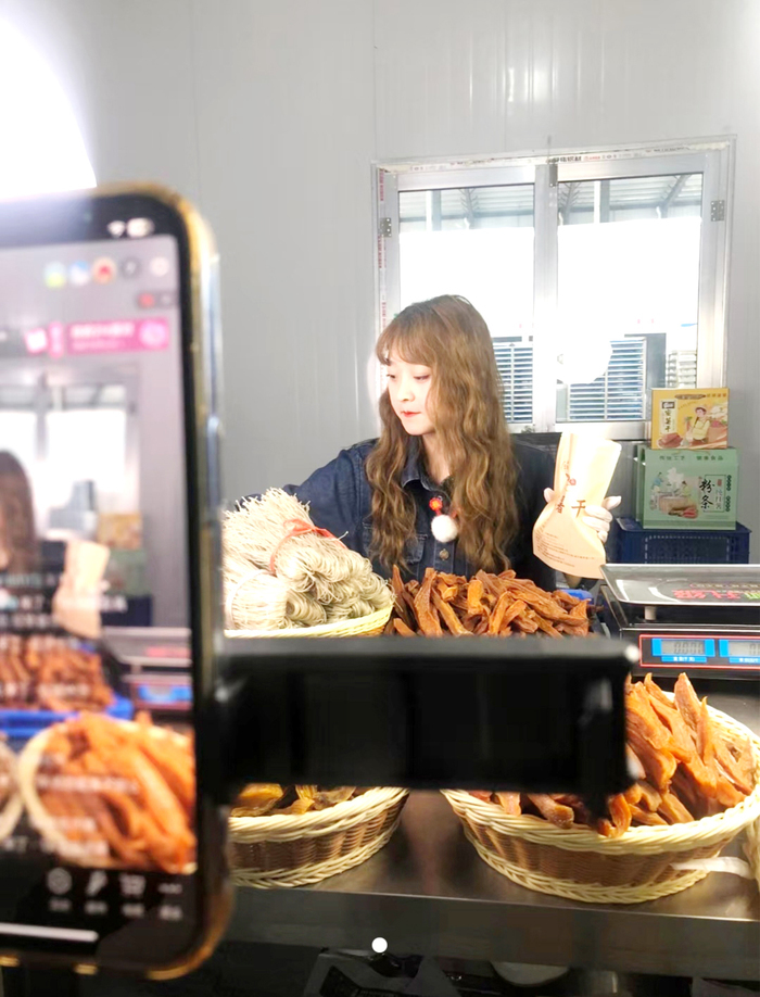 车间外的田埂上,90后乡村振兴专员正举着手机直播:“家人们看,这蜜薯糖心都流出来了,今天下单直接产地直发!”