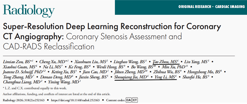 新年伊始,济南市人民医院影像科传来重磅捷报——由科室深度参与的全国多中心临床研究成果,成功发表于放射学领域顶级期刊《Radiology》(影响因子15.20.为放射学领域最具影响力的权威刊物之一)。标志着济南市人民医院在心血管影像临床研究领域迈出了重要一步,跻身全国高水平研究协作行列!