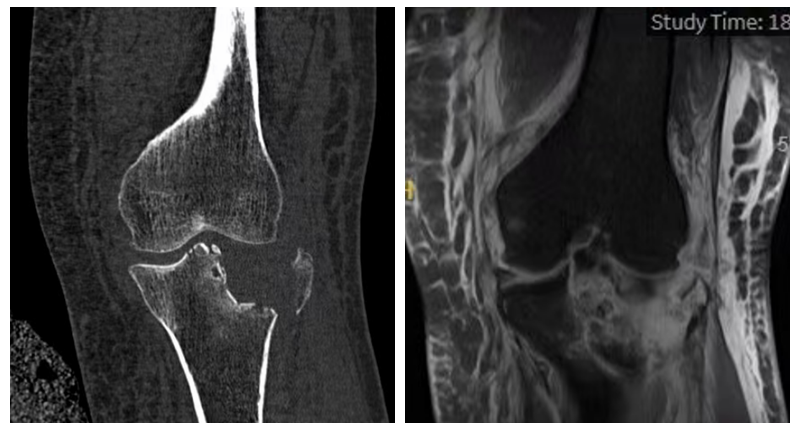 核磁共振(MRI):揭开了软组织损伤的面纱——明确了内侧副韧带(MCL)和外侧半月板的损伤程度。